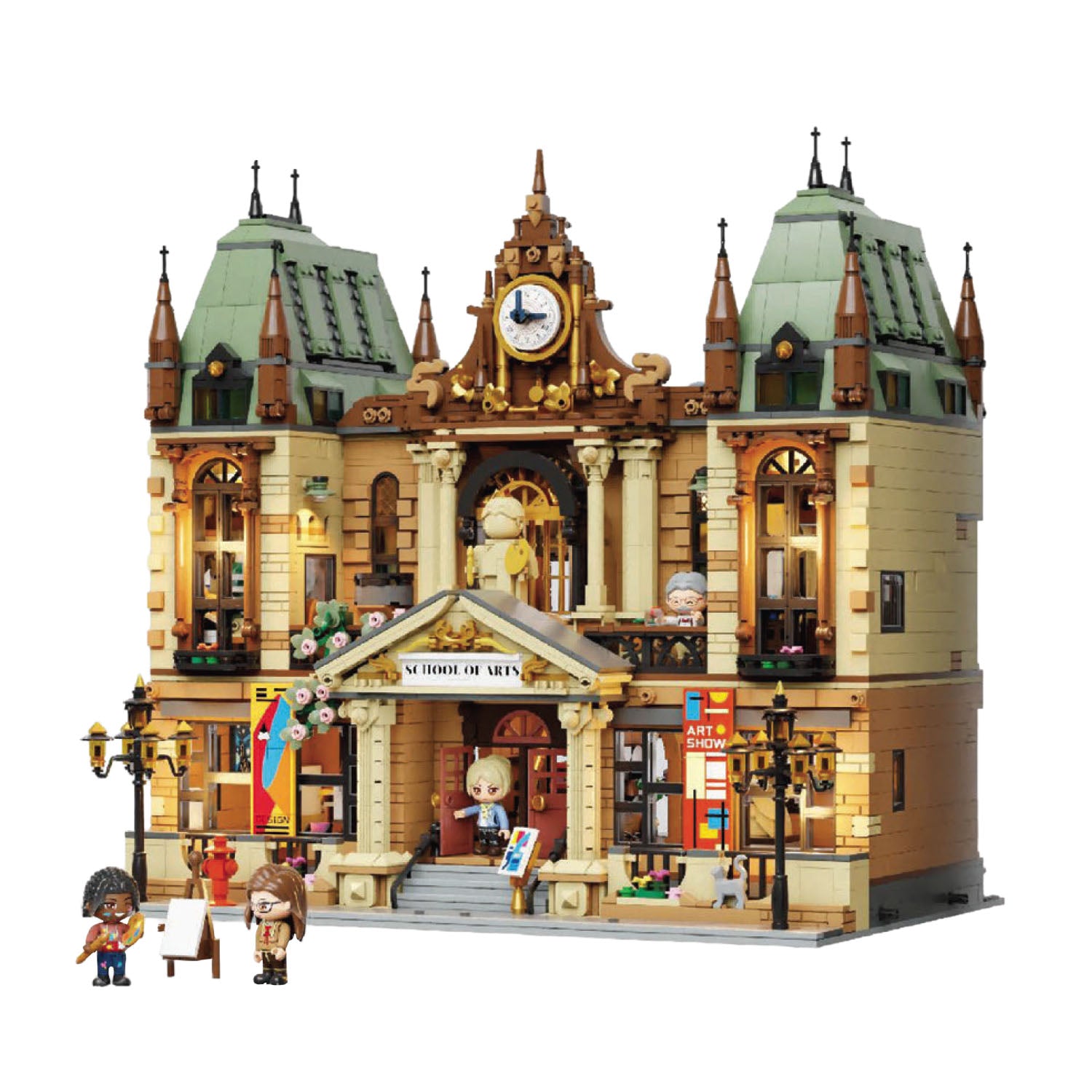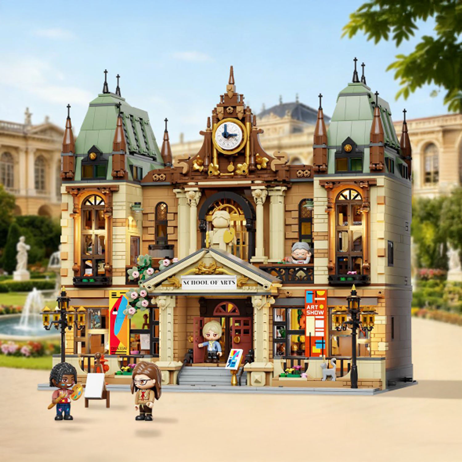 Ispirata alle grandi accademie europee e progettata con il designer James May, questa Scuola d’Arte in mattoncini unisce eleganza classica e ricchezza di dettagli. La facciata simmetrica con portico ad archi, sculture decorative e torre dell’orologio crea un edificio scenografico dal forte carattere artistico.