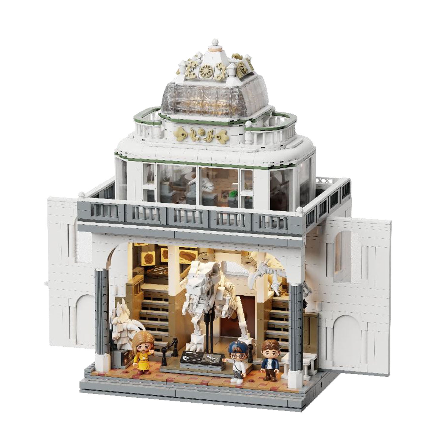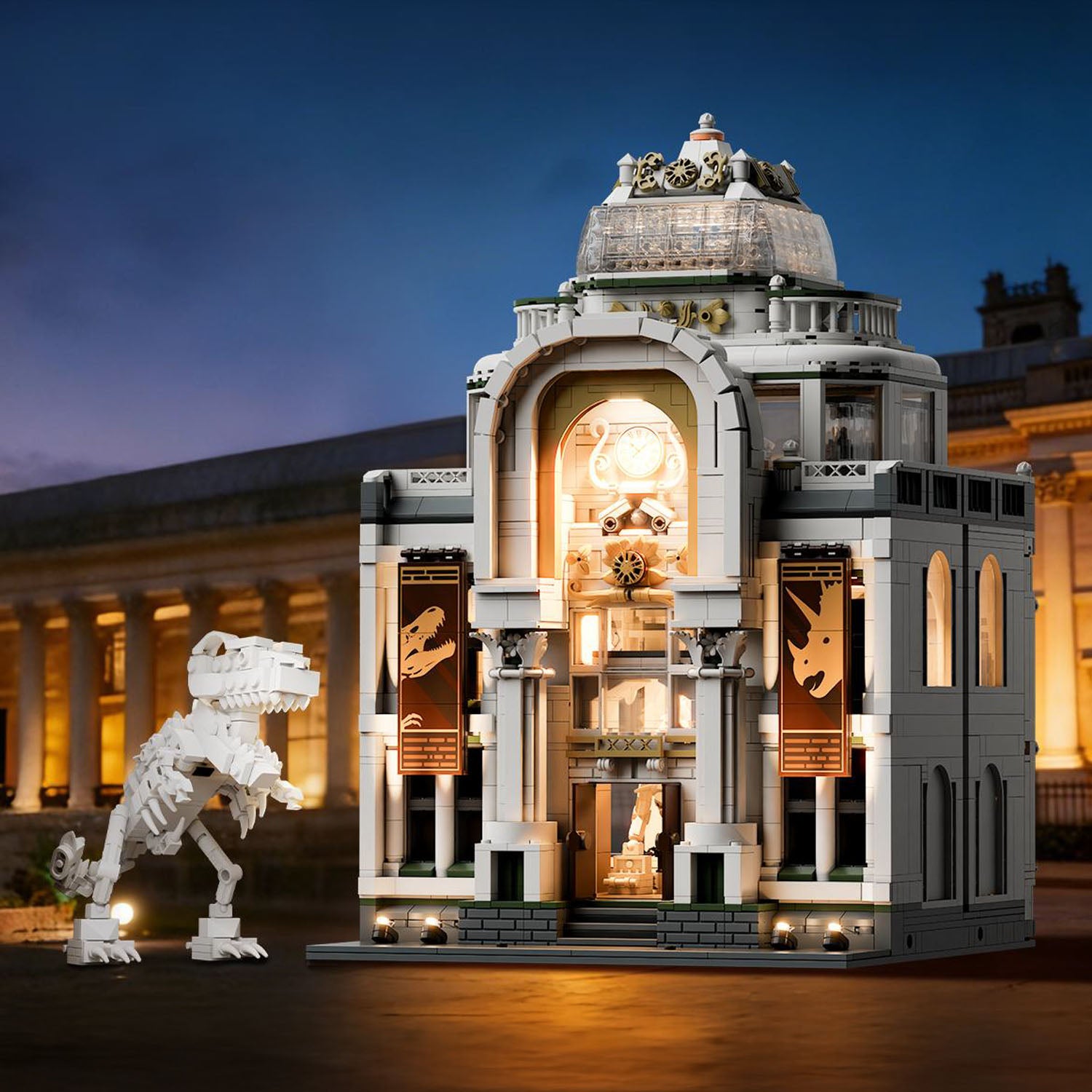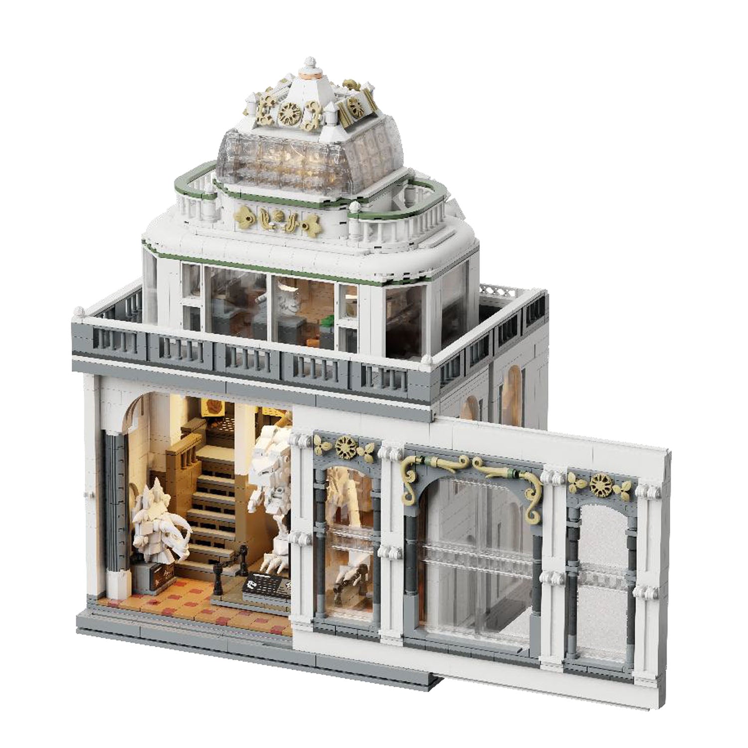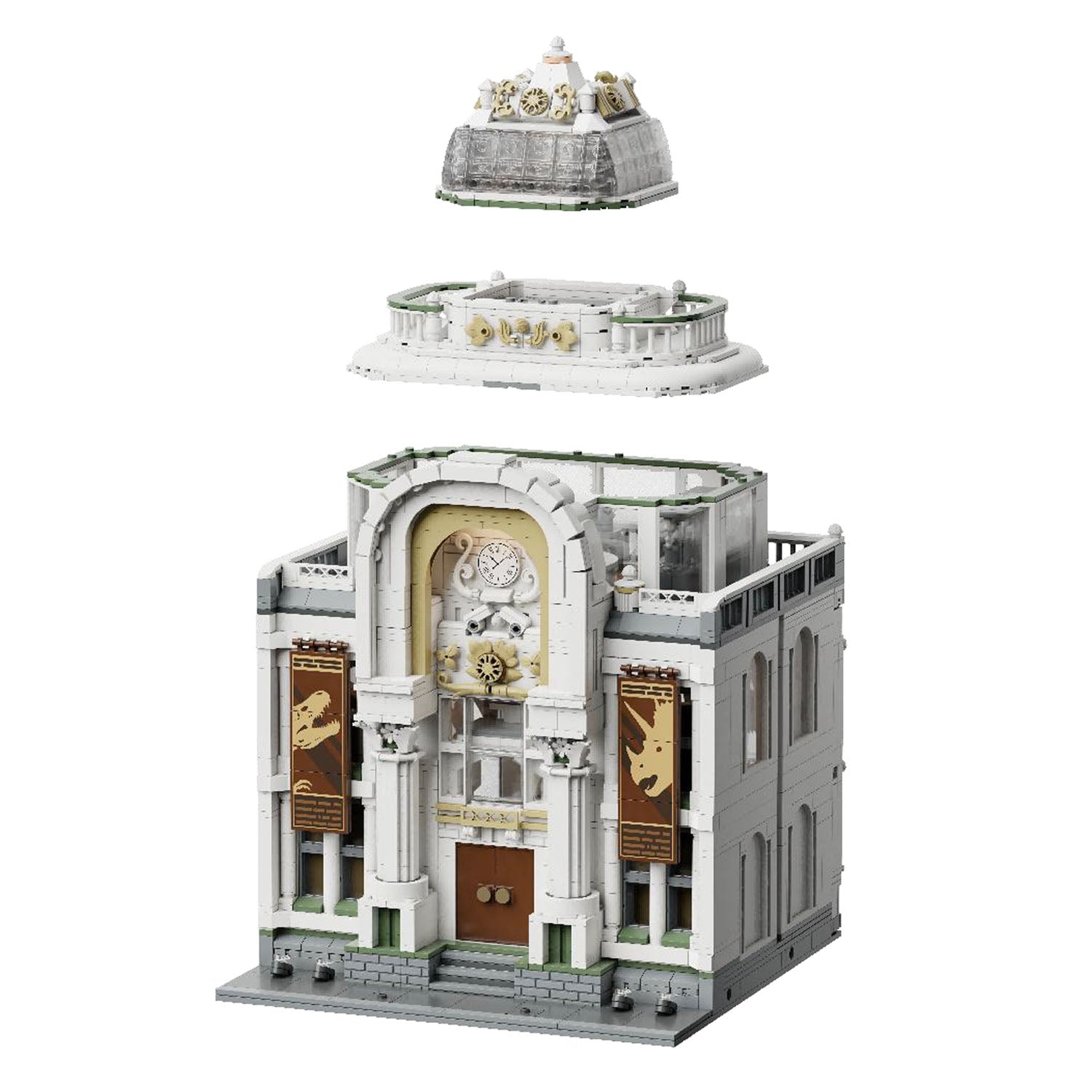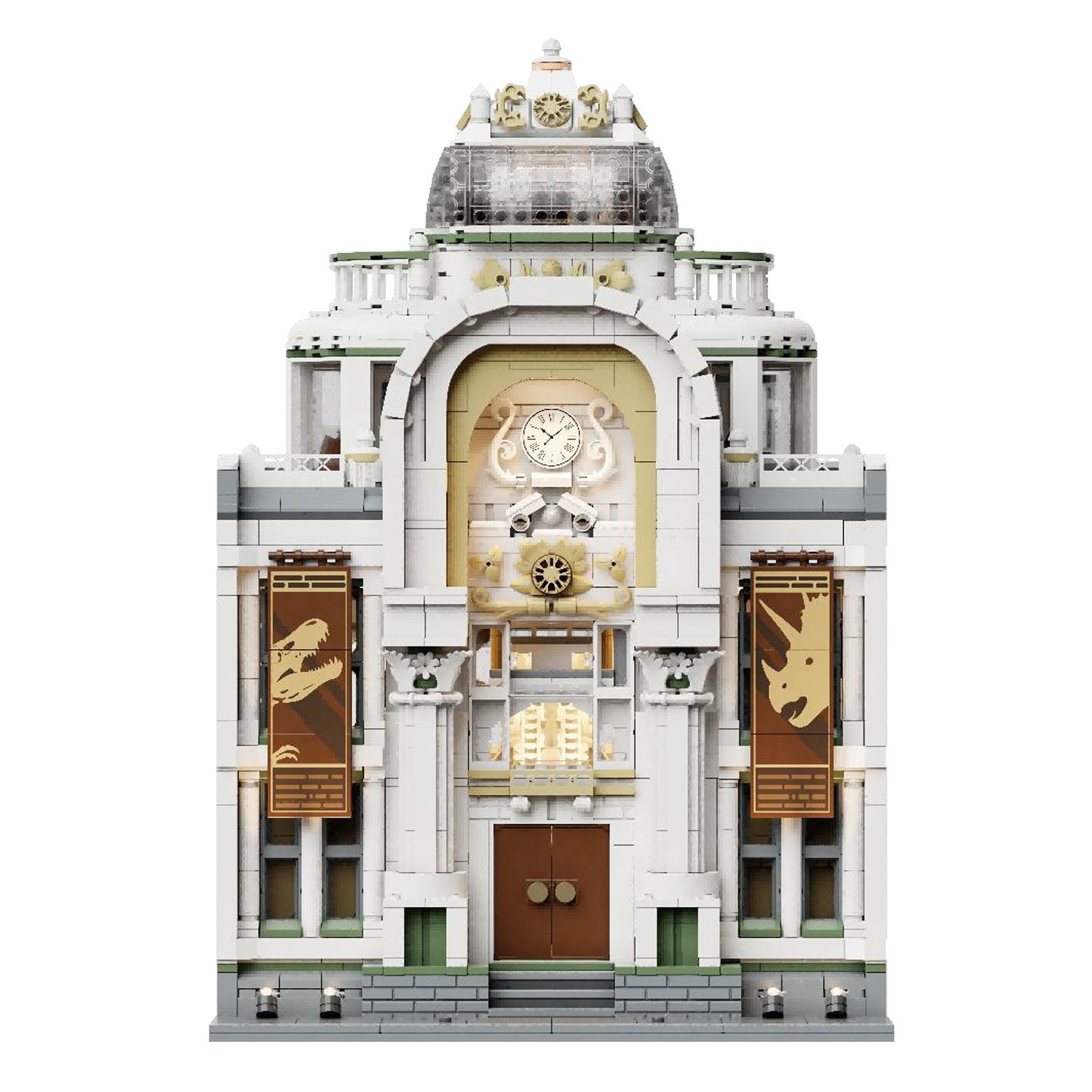 Un edificio monumentale in stile barocco che trasforma la paleontologia in spettacolo da esposizione. Il Museo dei Dinosauri Pantasy® unisce architettura classica, grandi vetrate e scenografia museale in un set ricco di atmosfera, progettato per catturare lo sguardo da ogni angolazione.