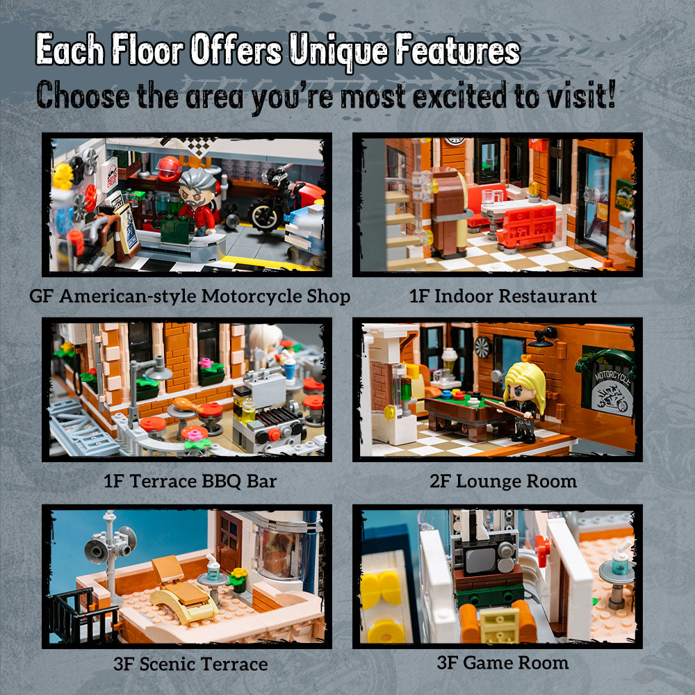 Entra nell’atmosfera vintage di un classico diner americano dedicato ai motociclisti, dove il design retrò incontra il fascino delle strade aperte. Questo modello offre un’esperienza appagante, dettagli ricchi e un’ambientazione curata che riproduce tavoli, sgabelli, insegne luminose e la tipica atmosfera da “road stop”.